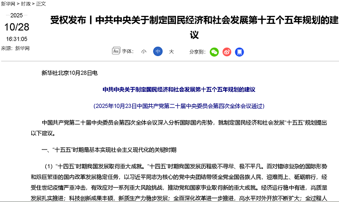 受权发布丨中共中央关于制定国民经济和社会发展第十五个五年规划的建议
