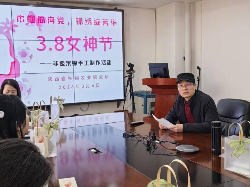 为迎接第116个“三八”国际劳动妇女节的到来,3月6日上午,陕西省生物农业研究所工会、女职工委员会精心组织开展了“巾帼心向党 巧手绽芳华”非遗宋锦手工制作主题活动。活动由女职工委员会主任张红艳主持,全所女职工欢聚一堂,在指尖技艺中感受非遗魅力,共庆温馨佳节。