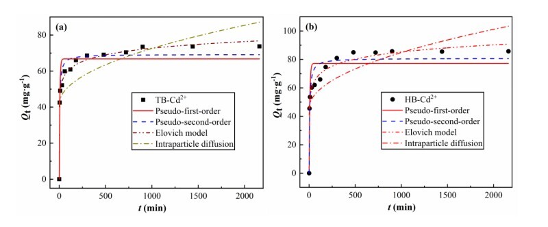 镉离子(Cd2+)在生物炭上的吸附动力学曲线