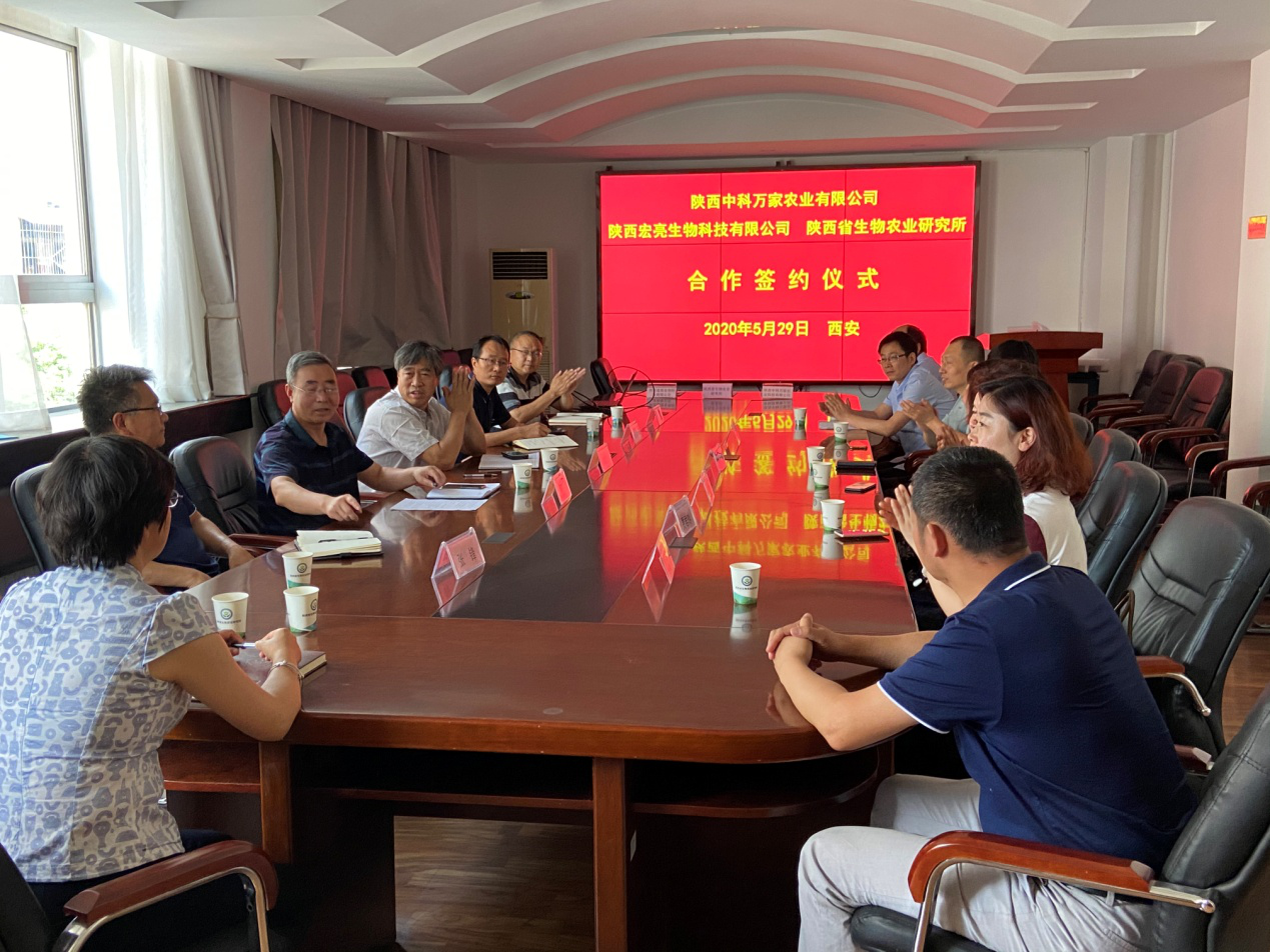 为了进一步推动“一所一品”重大科技项目科技成果转移转化,使科技成果产品尽快进入市场,为经济社会发展服务,5月29日,陕西省生物农业研究所与陕西中科万家农业有限公司、陕西宏亮生物科技有限公司在科创中心召开产品生产销售合作会议。