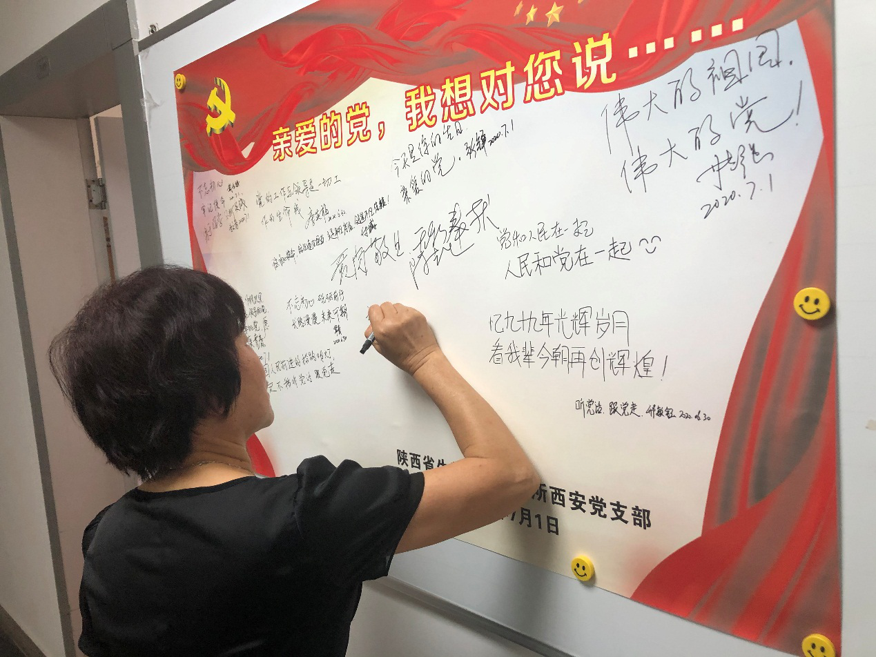 支部组织党员同志通过观看了记录片《建党伟业》,加强党史学习,提高党性修养;组织开展“我想对党说”寄语展示活动,党员同志们积极参加,在留言墙报上抒发了对党的真挚祝福。