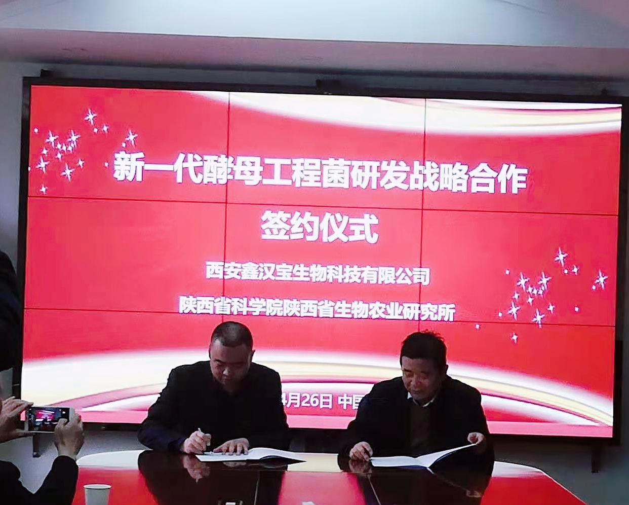 4月26日上午,在经历了前期多次沟通、洽谈后,陕西省生物农业研究所与西安鑫汉宝生物科技有限公司在西安举行了新一代酵母工程菌研发战略合作签约仪式。西安鑫汉宝生物科技有限公司法人王文盼,省生物农业研究所所长张兴昌,农业生物技术研究中心主任张强,农业生物技术研究中心技术人员,以及业务科、综合办公室相关人员出席签约仪式。