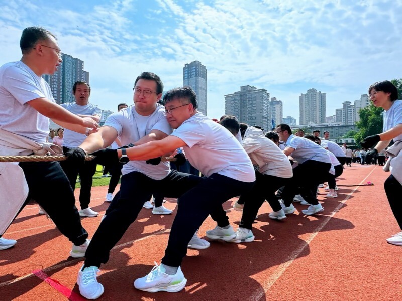 作品介绍:镜头定格职工运动会拔河赛场的燃情瞬间,红跑道上队员们弓步沉身、紧握长绳,口号声、呐喊声此起彼伏,将团队协作的张力推向高潮。这场力量与智慧的较量,不仅展现了职工们“拧成一股绳”的拼搏精神,更诠释了“人心齐,泰山移”的深刻内涵。最终,无论胜负,大家相视而笑的瞬间,定格了超越竞技的归属感与荣耀感。