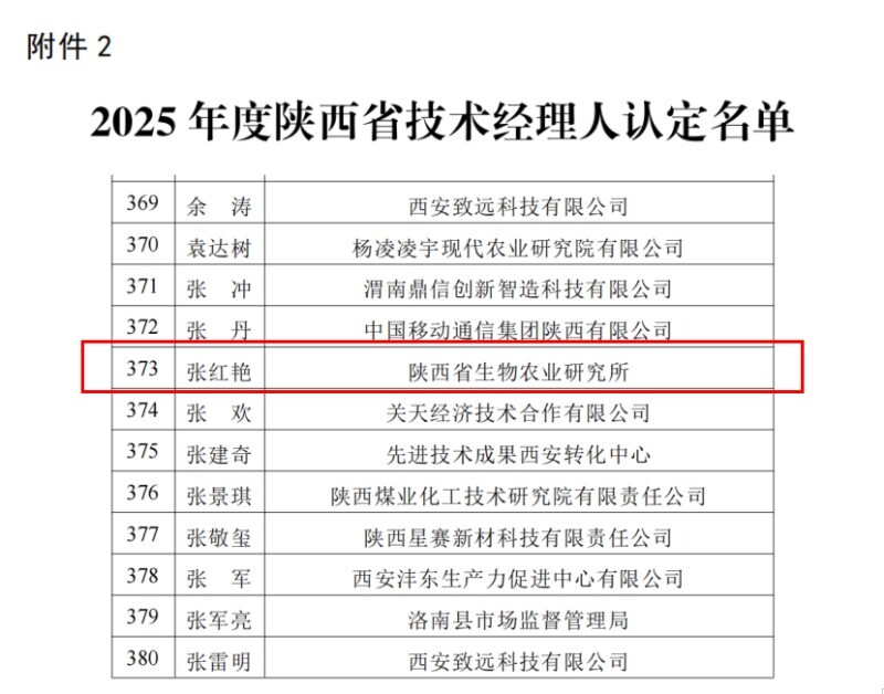 12月30日,陕西省科技厅发布了《关于公布2025年度陕西省技术经理人认定名单、金牌和优秀技术经理人名单的通知》,经形式审查、专家评审、公示等环节,研究所助理研究员张红艳被正式认定为陕西省第六批技术经理人。
