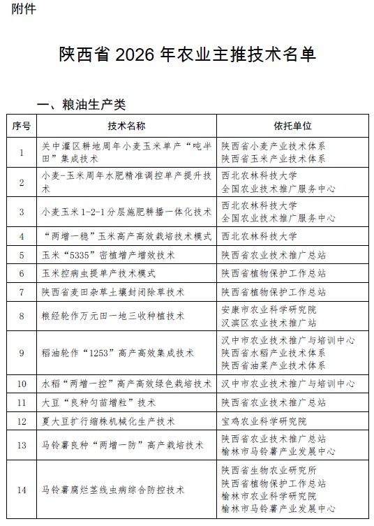 陕西省生物农业研究所一项技术入选2026年陕西省农业主推技术