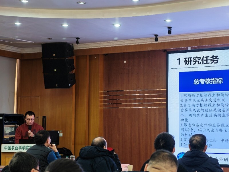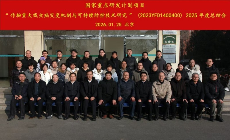 2026年1月24-25日,由中国农科院植保所主持、中国农科院蔬菜花卉所承办的“十四五”国家重点研发计划“作物重大线虫病灾变机制与可持续防控技术研究”(2023YFD1400400)项目2025年度总结会在北京召开。我所李英梅研究员、常青副研究员、周搏航助理研究员一行三人受邀参会,分别就我所承担的重点研发子项目2025年度进展作专题汇报。