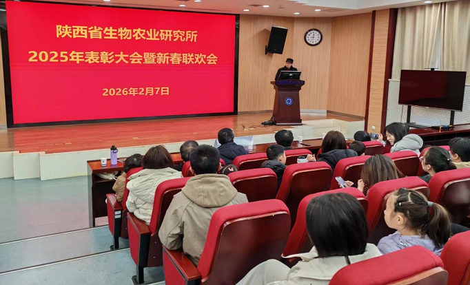 陕西省生物农业研究所召开2025年度表彰大会暨新春联欢会2月7日上午,陕西省生物农业研究所在院机关二楼报告厅召开2025年度表彰大会暨新春联欢会。大会全面回顾了过去一年研究所在科研创新、成果转化、社会服务等方面取得的丰硕成果,并对年度先进集体和优秀个人进行了表彰。全体干部职工齐聚一堂,在温馨热烈的氛围中喜迎新春、共话...2026-02-08