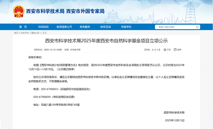 12月15日,首批西安市自然科学基金立项名单正式公布,本次获批项目涵盖了新材料、生物医药、人工智能,农业科学等多个前沿方向。陕西省生物农业研究所王远征博士的面上项目《MiHsp22受低温驯化表达及调控南方根结线虫卵粒耐冷的机理研究》获得资助。2025年,围绕全市经济社会发...
